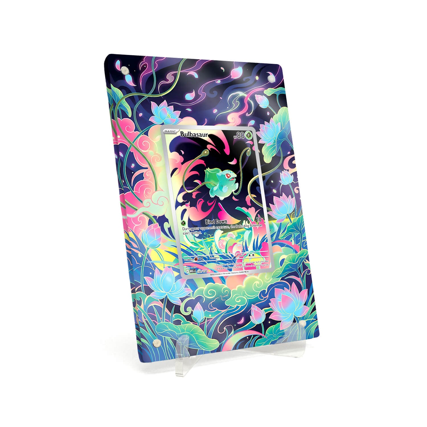 Unser magnetischen Extended Artwork Display Case Rahmen ist passend für Pokemon Bulbasaur Mega Evolution MEG #133 RAW Karten inklusive passendem Acryl Ständer.