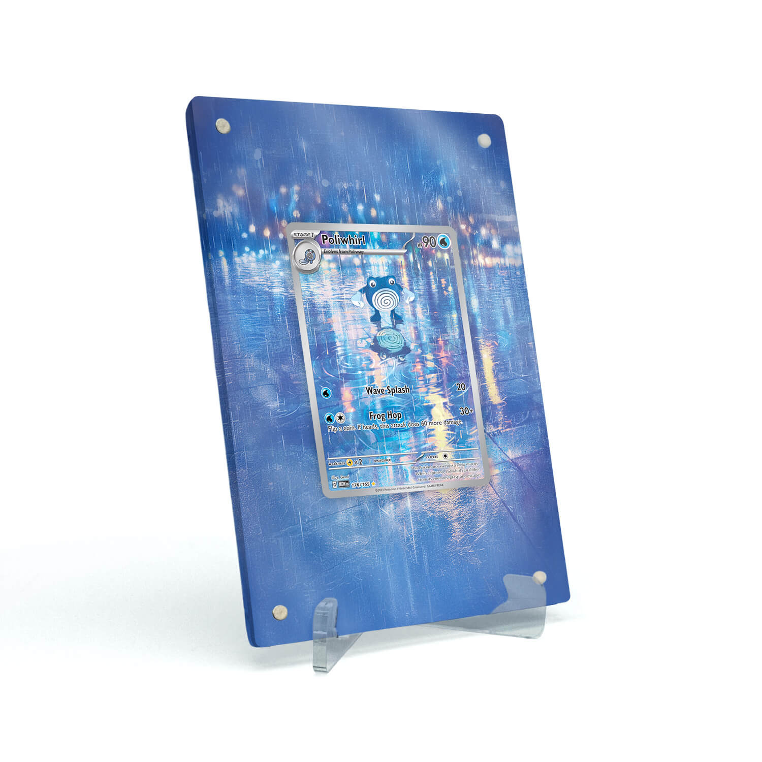 Unser magnetischen Extended Artwork Display Case Rahmen ist passend für Pokemon Poliwhirl 151 MEW 176 RAW Karten inklusive passendem Acryl Ständer.