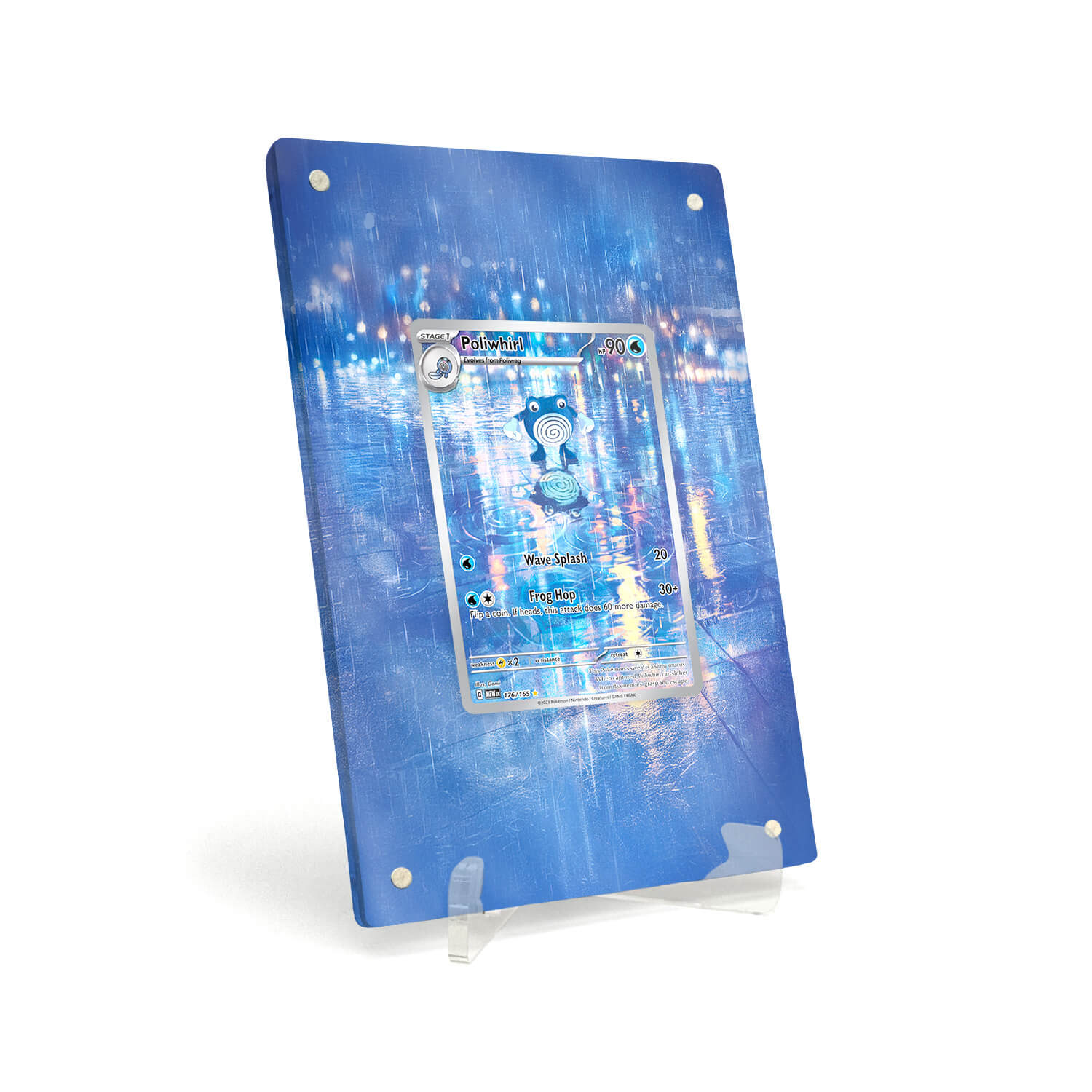 Our magnetic Extended Artwork Display Case frame is suitable for Pokemon Poliwhirl 151 MEW 176 RAW cards including a matching acrylic stand.
