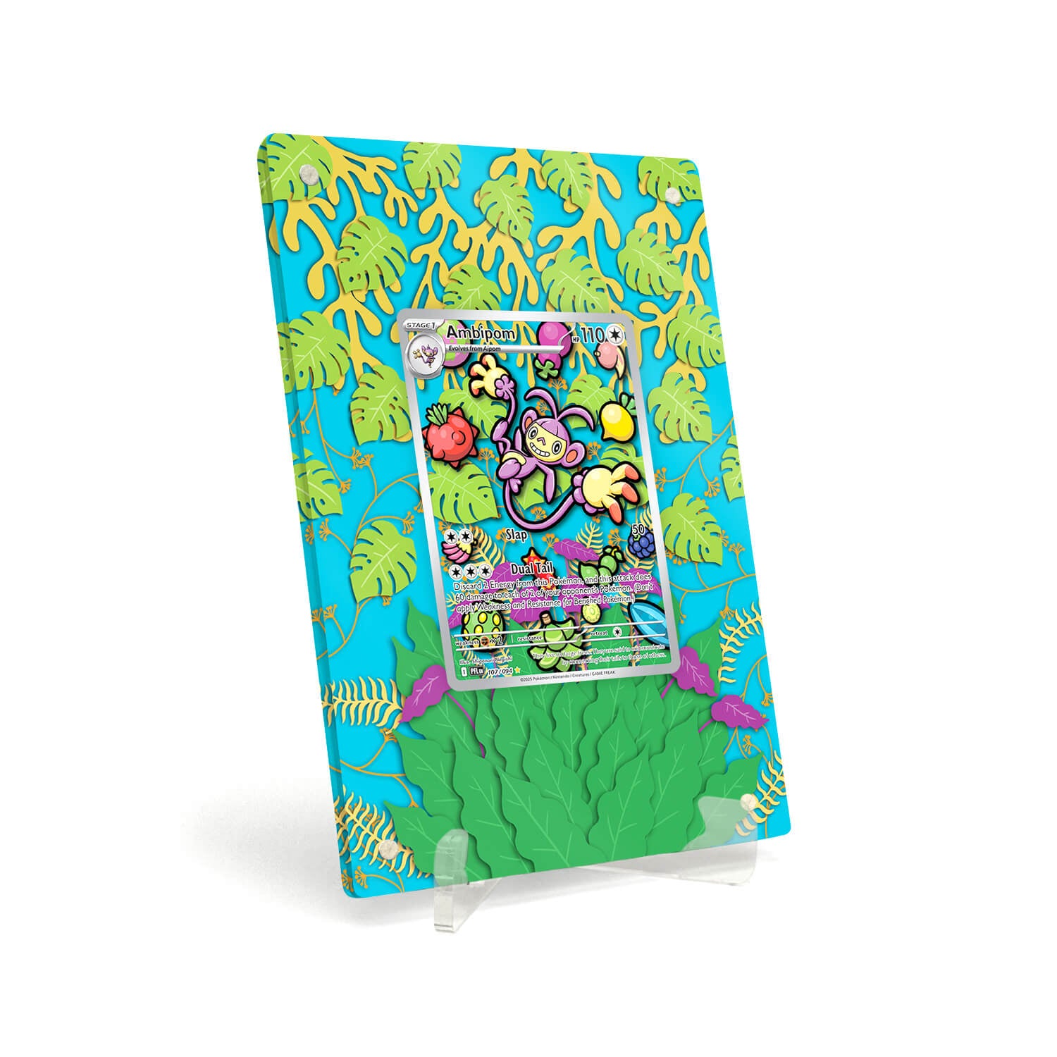 Unser magnetischen Extended Artwork Display Case Rahmen ist passend für Pokemon Ambipom Phantasmal Flames PFL 107 RAW Karten inklusive passendem Acryl Ständer.